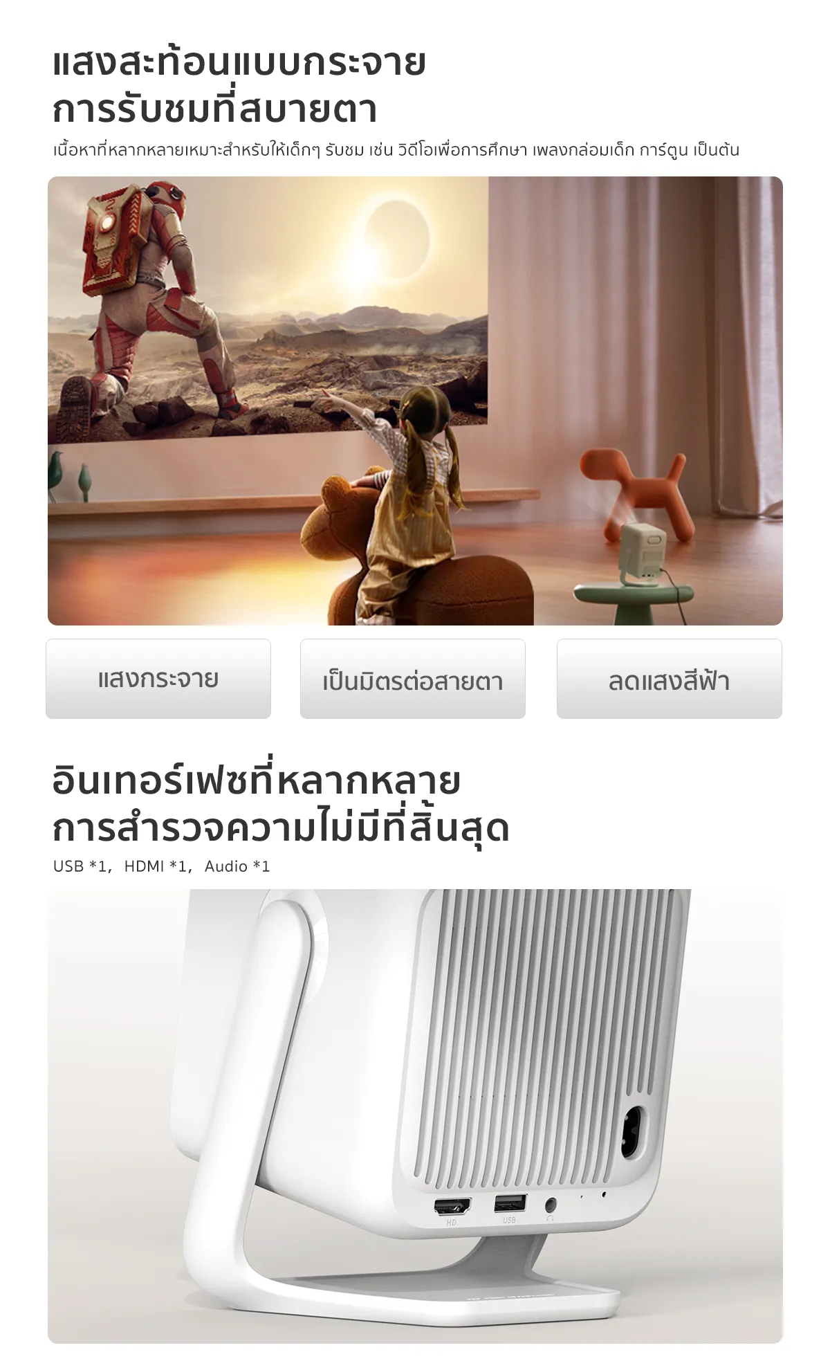 💠 แสงสะท้อนแบบกระจายการรับชมที่สบายตา เนื้อหาที่หลากหลายเหมาะสำหรับให้เด็กๆ รับชม เช่น วิดีโอเพื่อการศึกษาเพลงกล่อมเด็ก การ์ตูน เป็นต้น