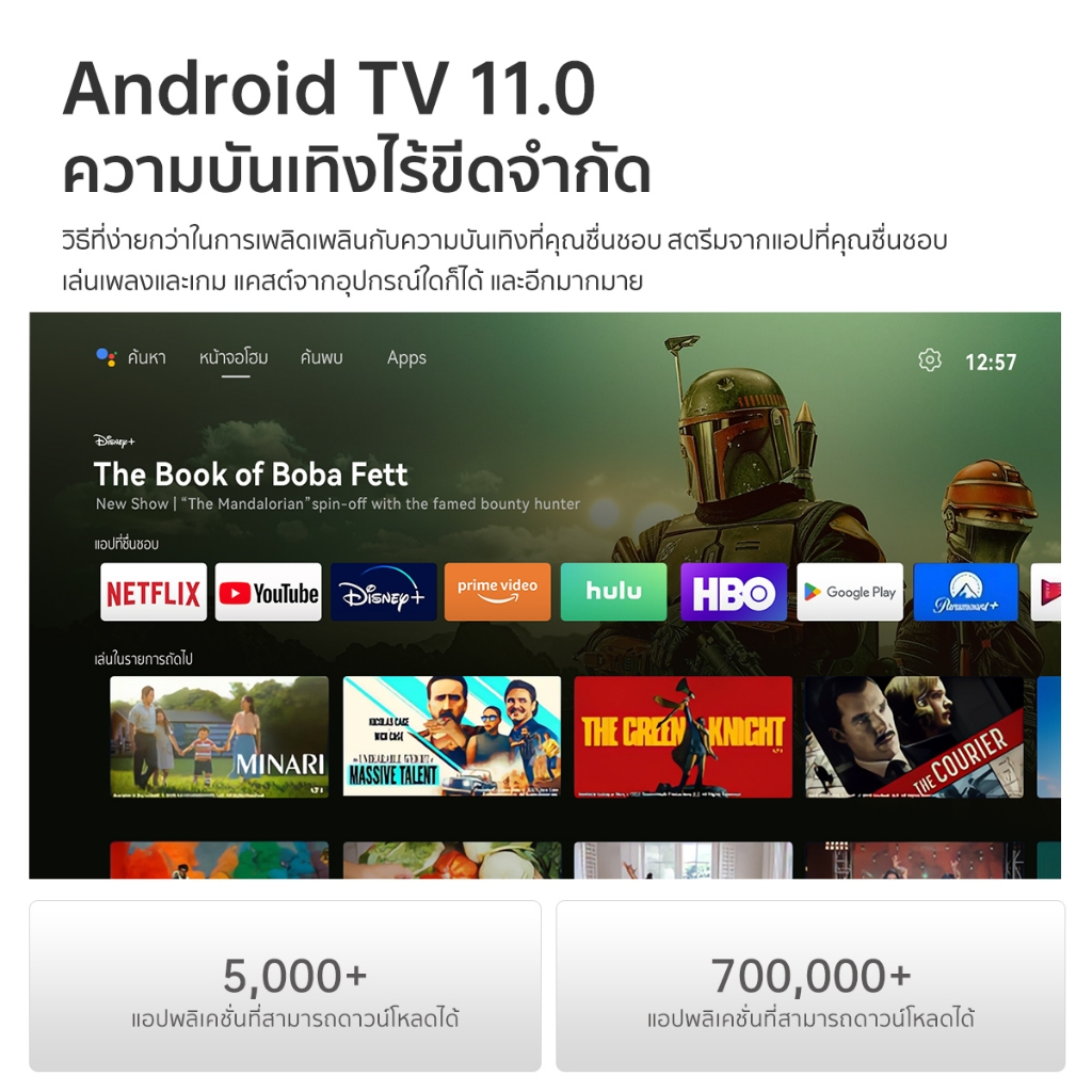 💠 Android TV 11.0 ความบันเทิงไร้ขีดจำกัด วิธีที่ง่ายกว่าในการเพลิดเพลินกับความบันเทิงที่คุณชื่นชอบ สตรีมจากแอปที่คุณชื่นชอบ เล่นเพลงและเกม แคสต์จากอุปกรณ์ใดก็ได้ และอีกมากมาย