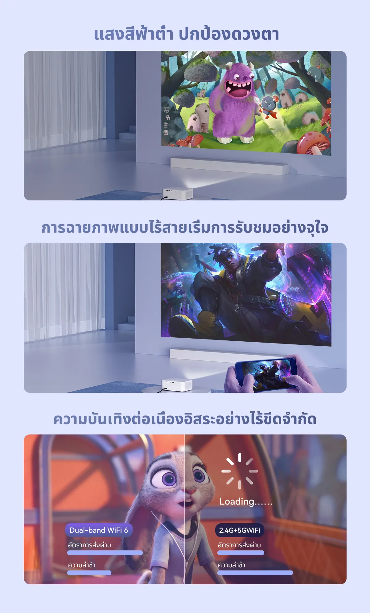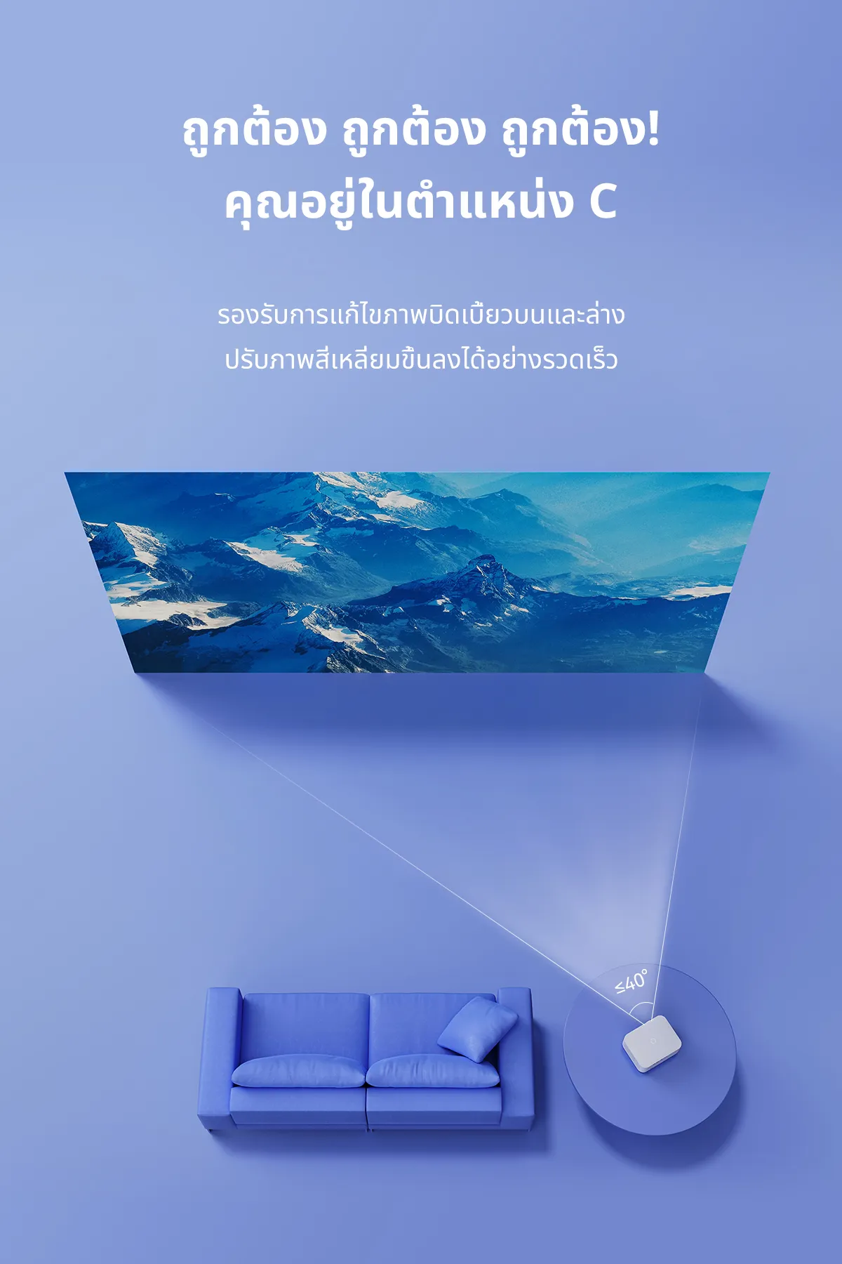 ✅ รองรับการฉายภาพ : 40-120 นิ้ว ระยะการฉายภาพที่แนะนำ 1.2 – 3.6 เมตร