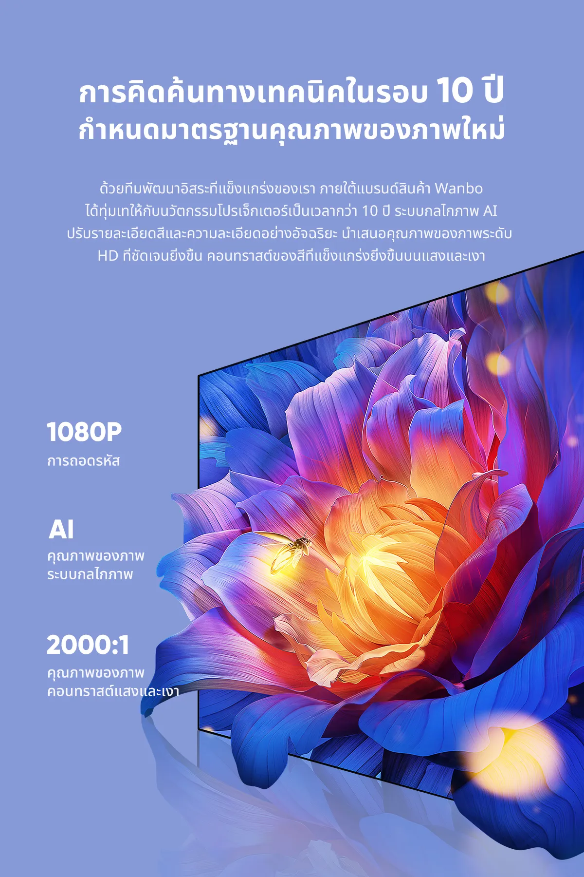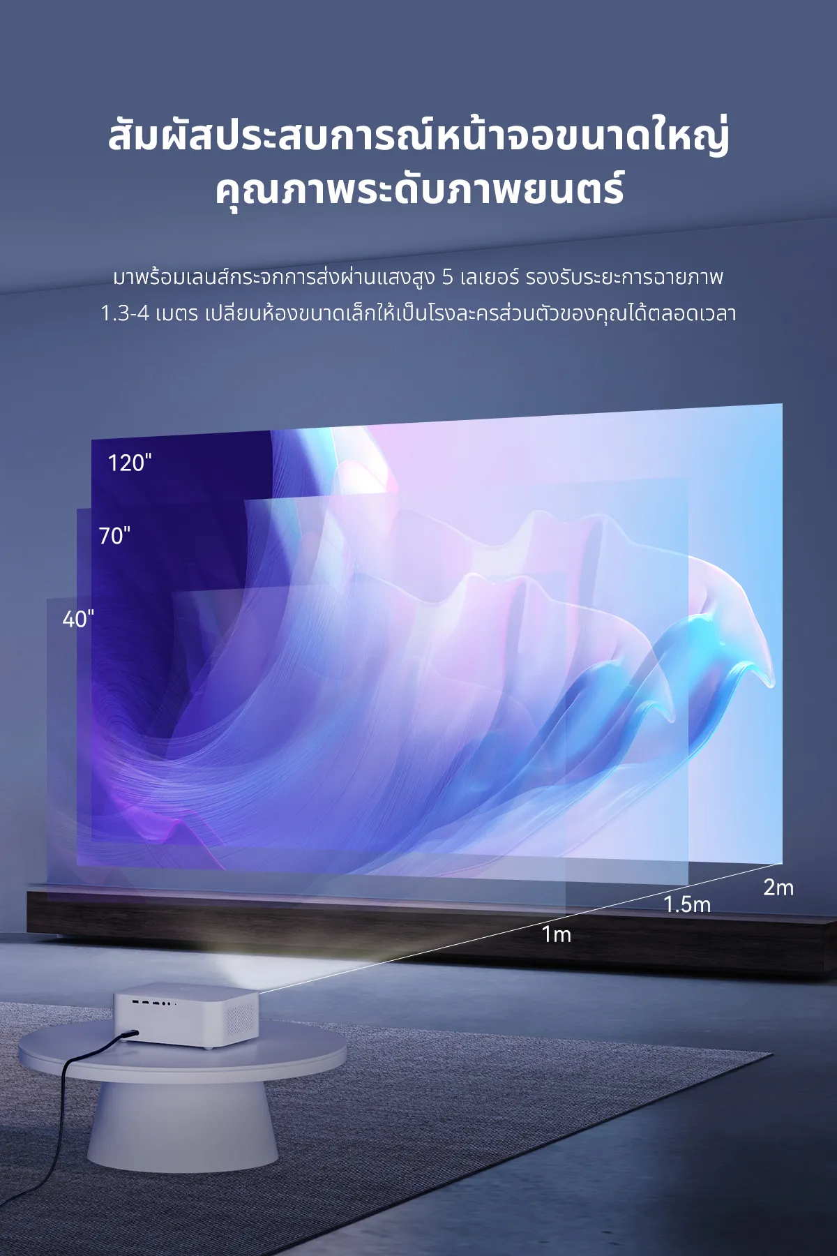🔹 ขนาดฉายภาพ – 40~120 นิ้ว