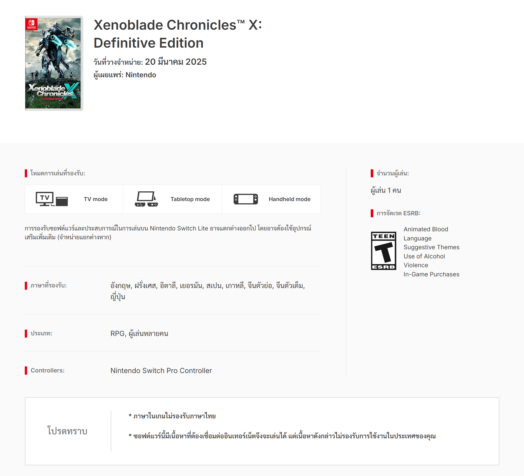 🔶Xenoblade Chronicles X: Definitive Edition แผ่นเกมสำหรับ Nintendo Switch ของแท้🔶