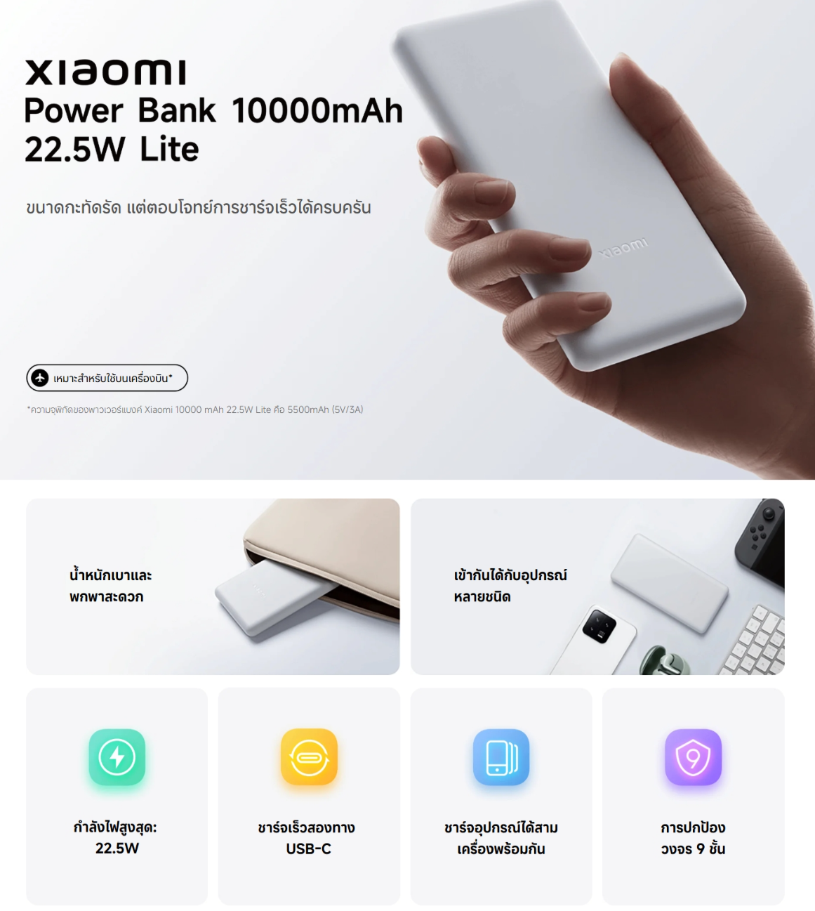🔶Xiaomi 22.5W Lite Power Bank 10000mAh (59626) พาวเวอร์แบงค์ 22.5W ขนาด 10000 mAh ของแท้ ประกันศูนย์ 6 เดือน🔶