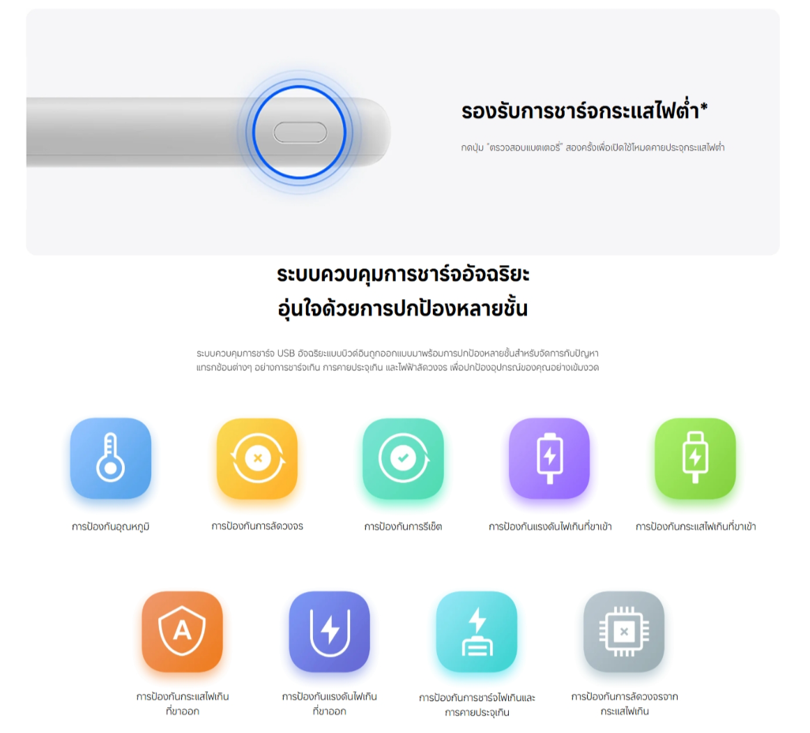✅ มีระบบป้องกันการชาร์จเกิน, ไฟฟ้าลัดวงจร, ตัดเมื่ออุณหภูมิสูงเกิน
