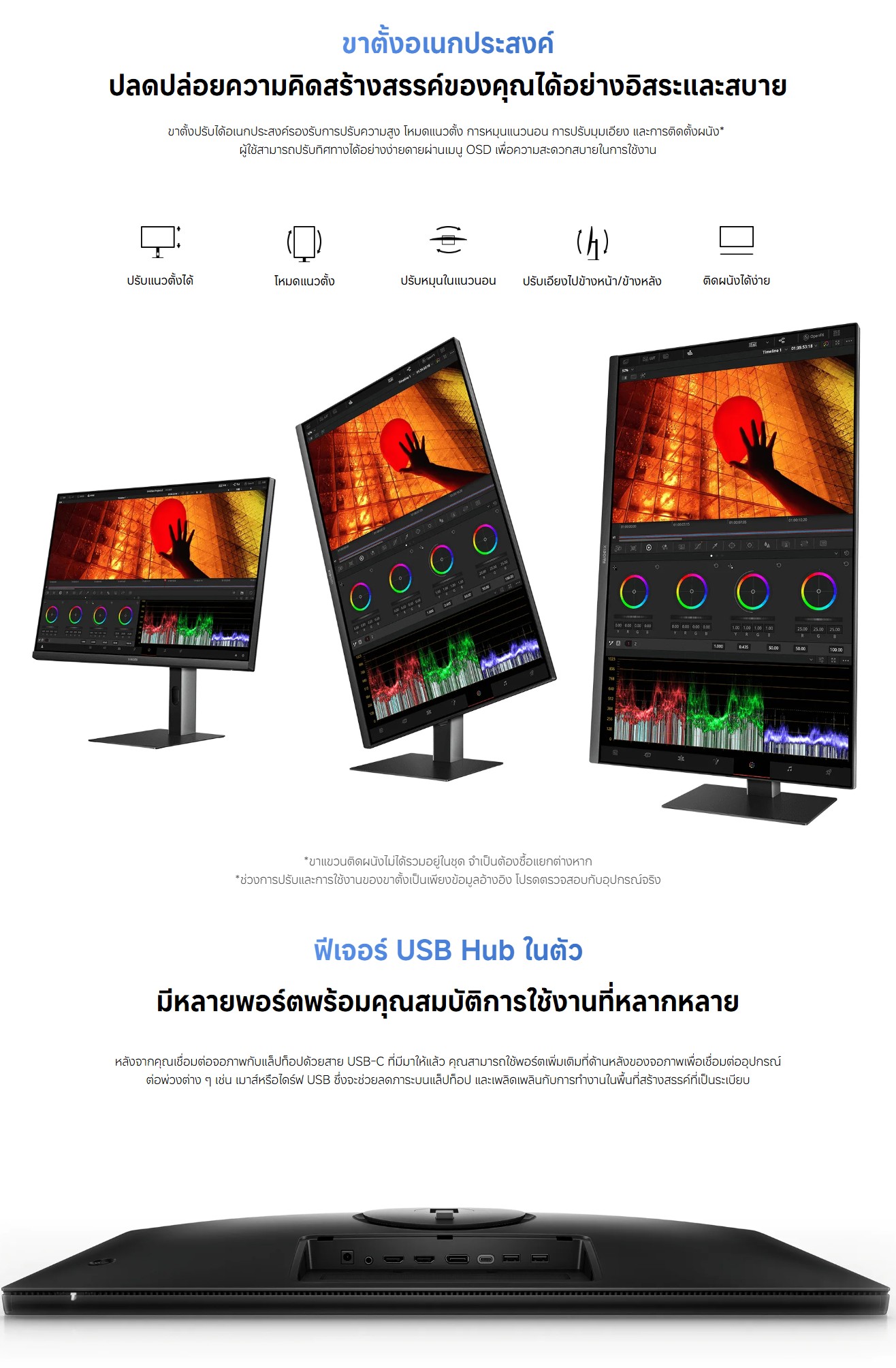 ✅ รองรับ port เชื่อมต่อ : DP 1.4 x 1,HDMI 2.0 x 2,Type-C x 1 (90W output),USB(2.0)x 2,Audio out x 1