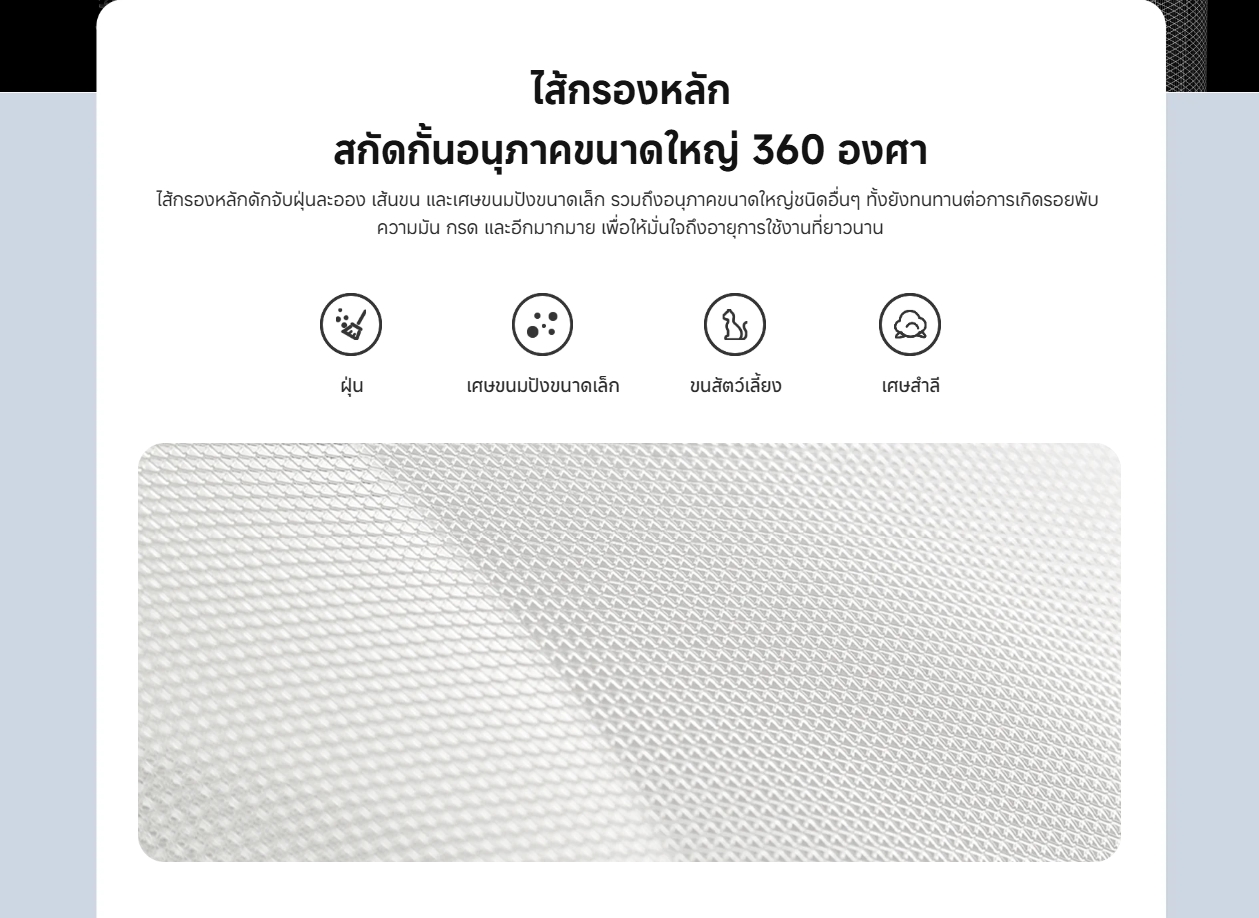 ✅ Primary Filter: กรองฝุ่น เส้นใยผ้า ขนสัตว์