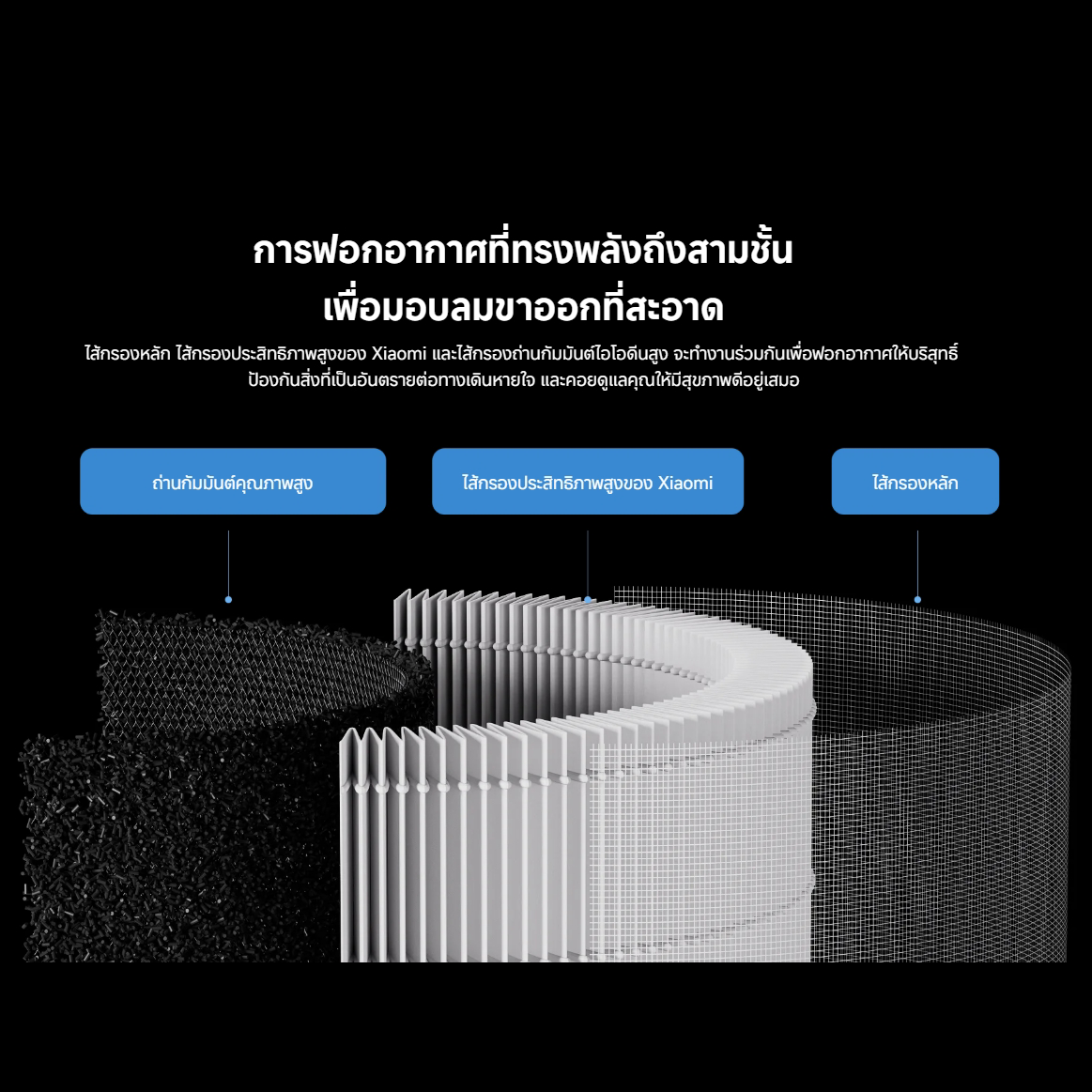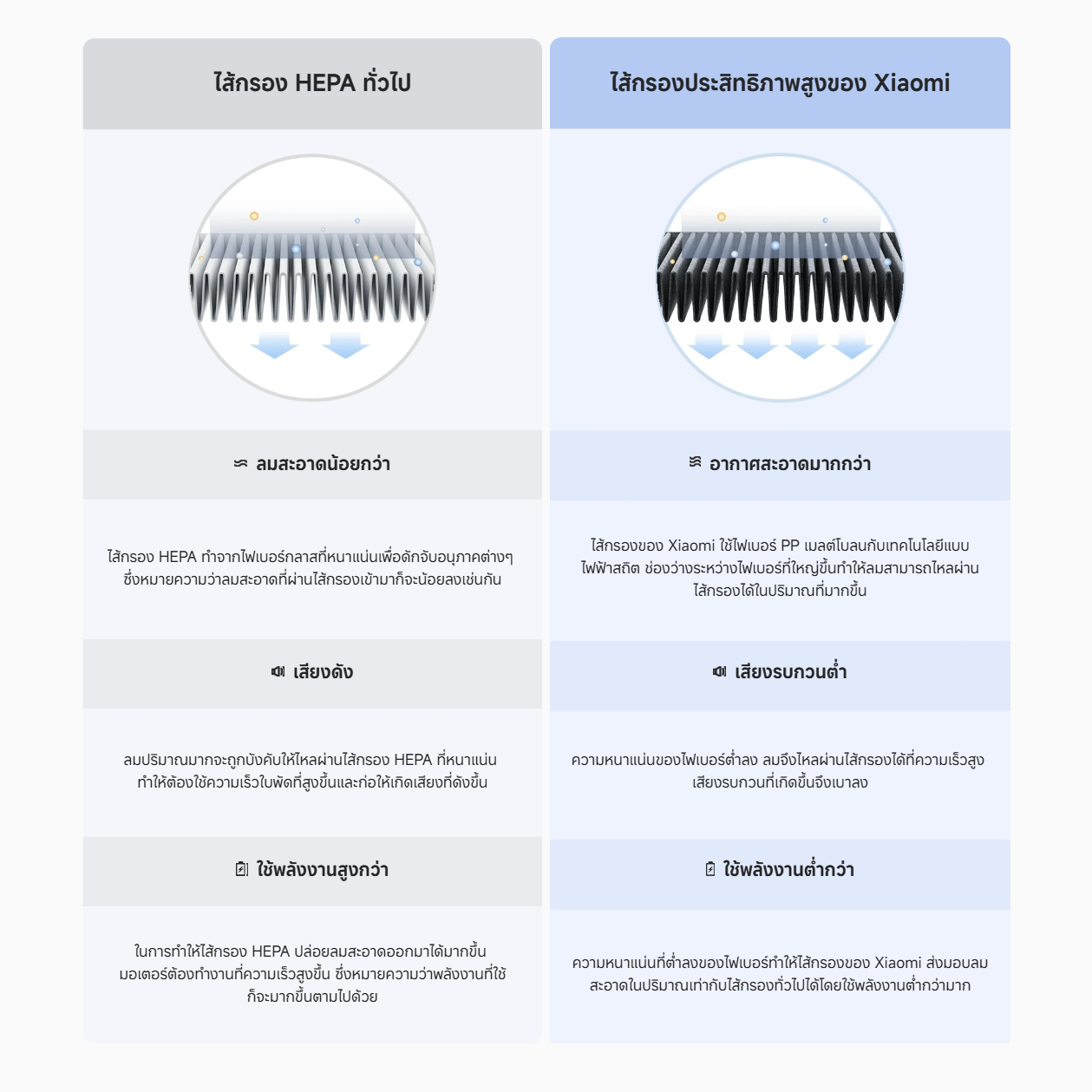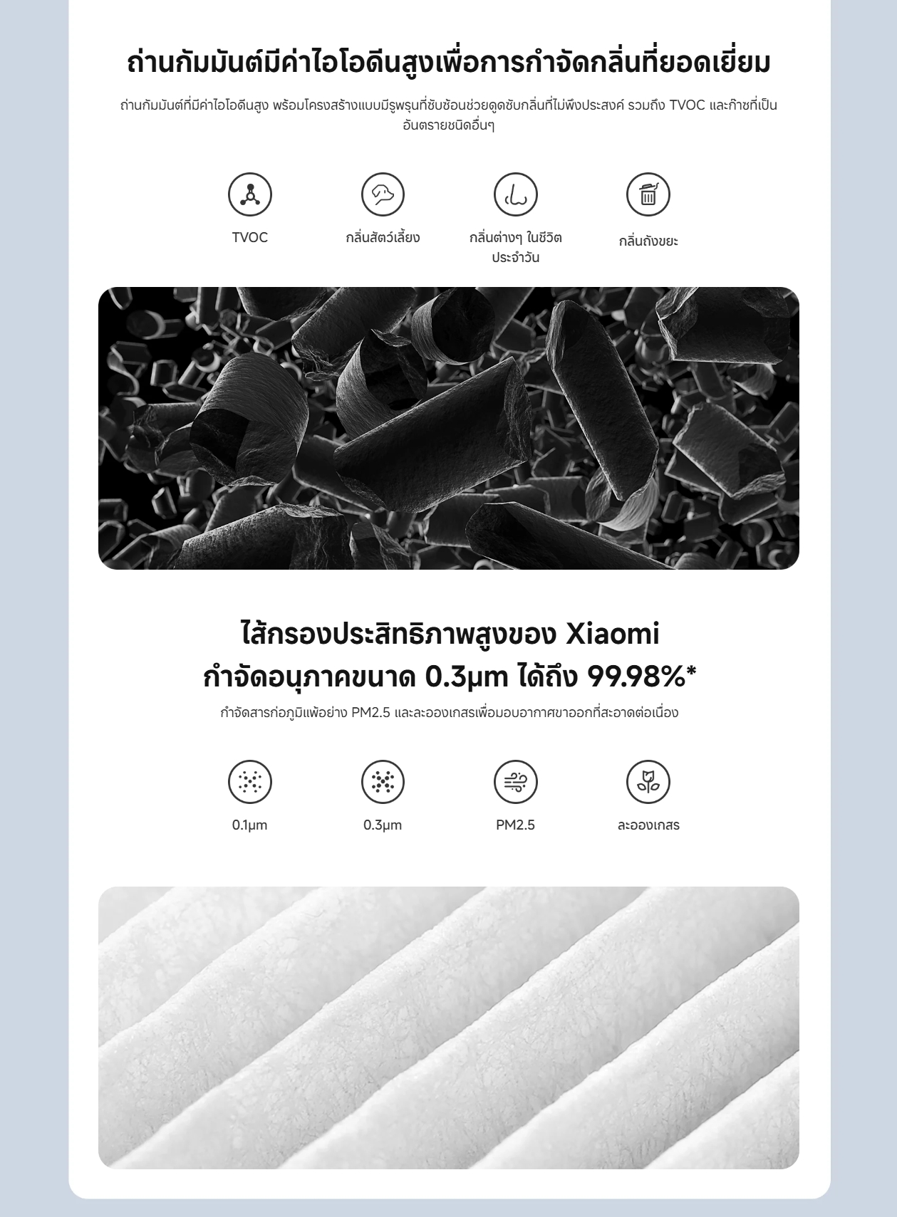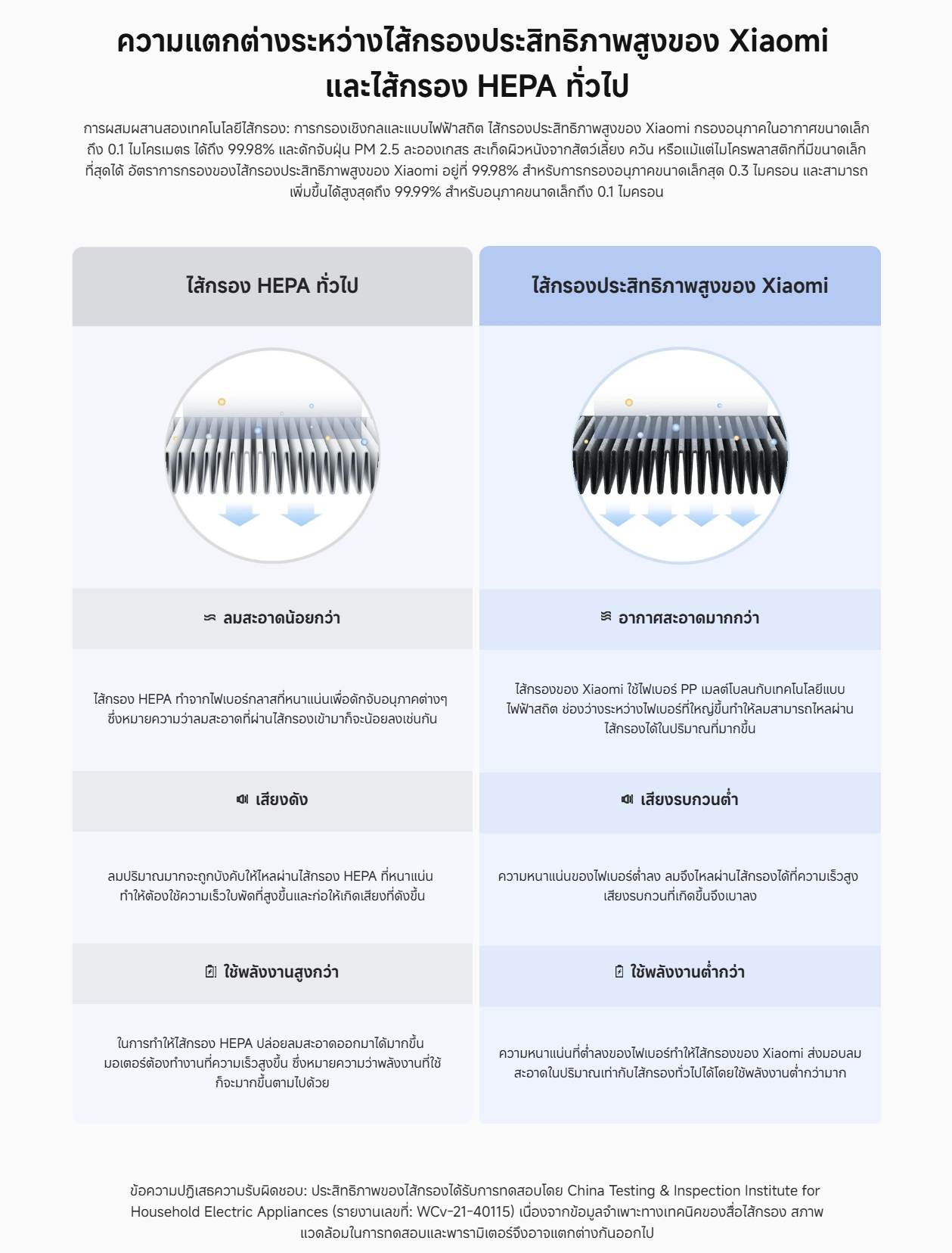 🔻 ไส้กรองประสิทธิภาพสูงของ Xiaomi กำจัดอนุภาคขนาด 0.3μm ได้ถึง 99.98%* 🔻