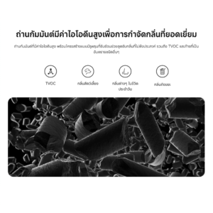 ถ่านกัมมันต์ที่มีค่าไอโอดีนสูง พร้อมโครงสร้างแบบมีรูพรุนที่ซับซ้อนช่วยดูดซับกลิ่นที่ไม่พึงประสงค์ รวมถึง TVOC และก๊าซที่เป็นอันตรายชนิดอื่นๆ