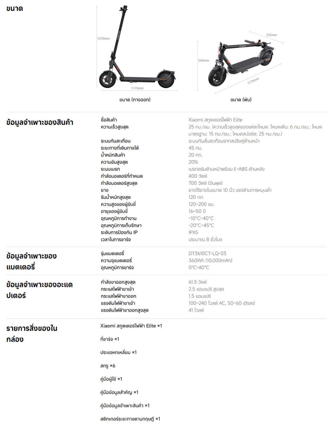 ✅ อุปกรณ์ในกล่อง : สกู๊ตเตอร์ , ที่ชาร์จ , ประแจ , สกรู , คู่มือ