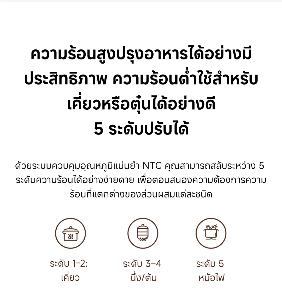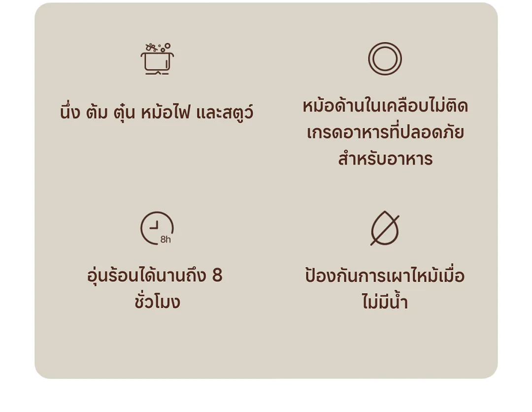 ✅ มีระบบความปลอดภัย หยุดทำความร้อนอัตโนมัติ เมื่อน้ำในหม้อใกล้หมด