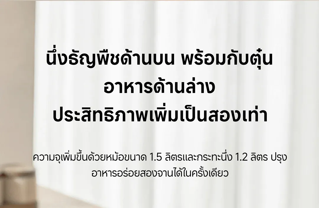 ✅ สามารถทำอาหาร 2 เมนูได้พร้อมกัน ด้วยหม้อต้มด้านล่างขนาด 1.5 L และ หม้อนึ่งด้านบนขนาด 1.2 L