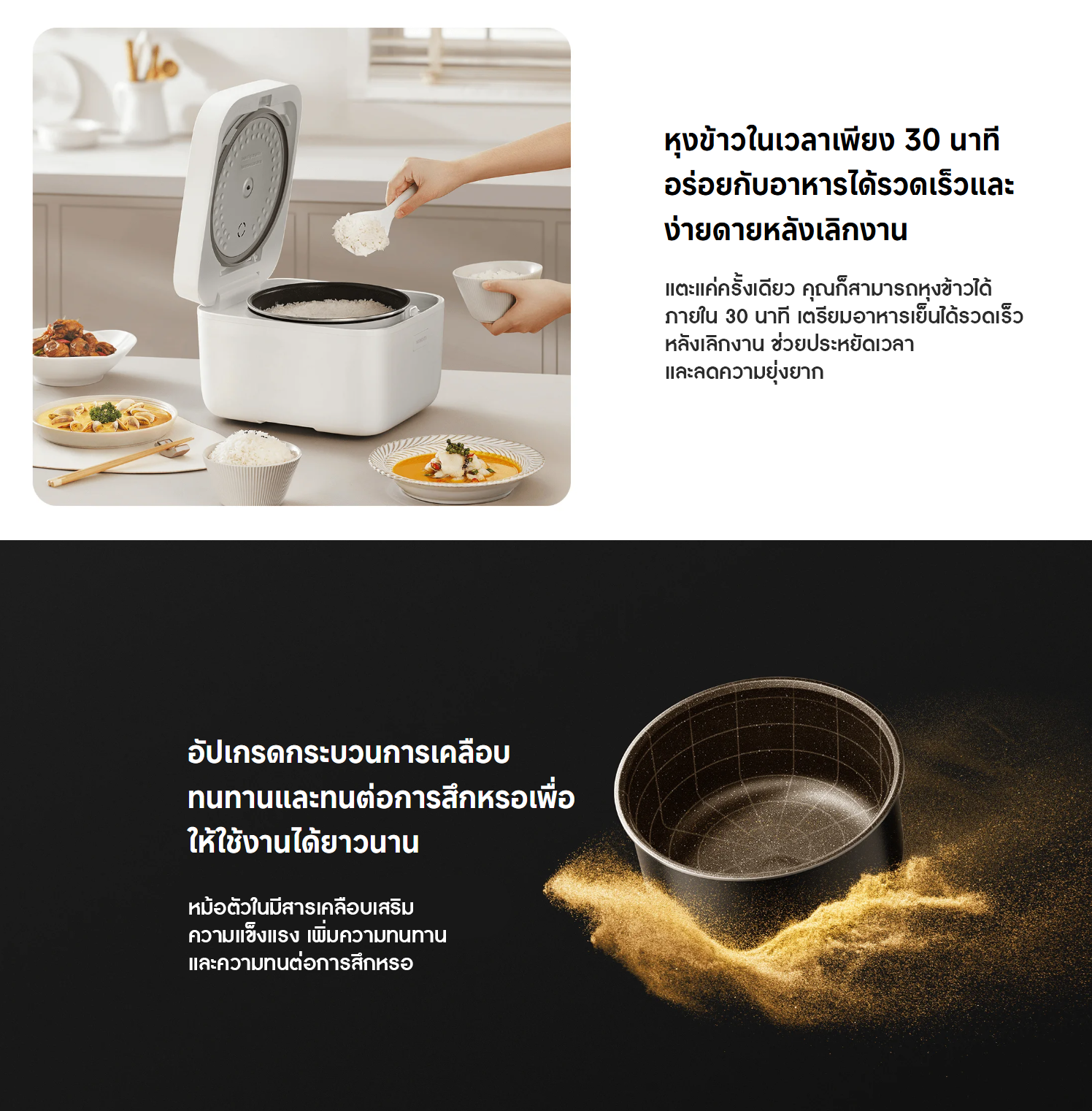 ✅ สามารถหุงข้าวเร็วภายใน 30 นาที (เวลาหุงจะปรับอัตโนมัติตามปริมาณข้าว)