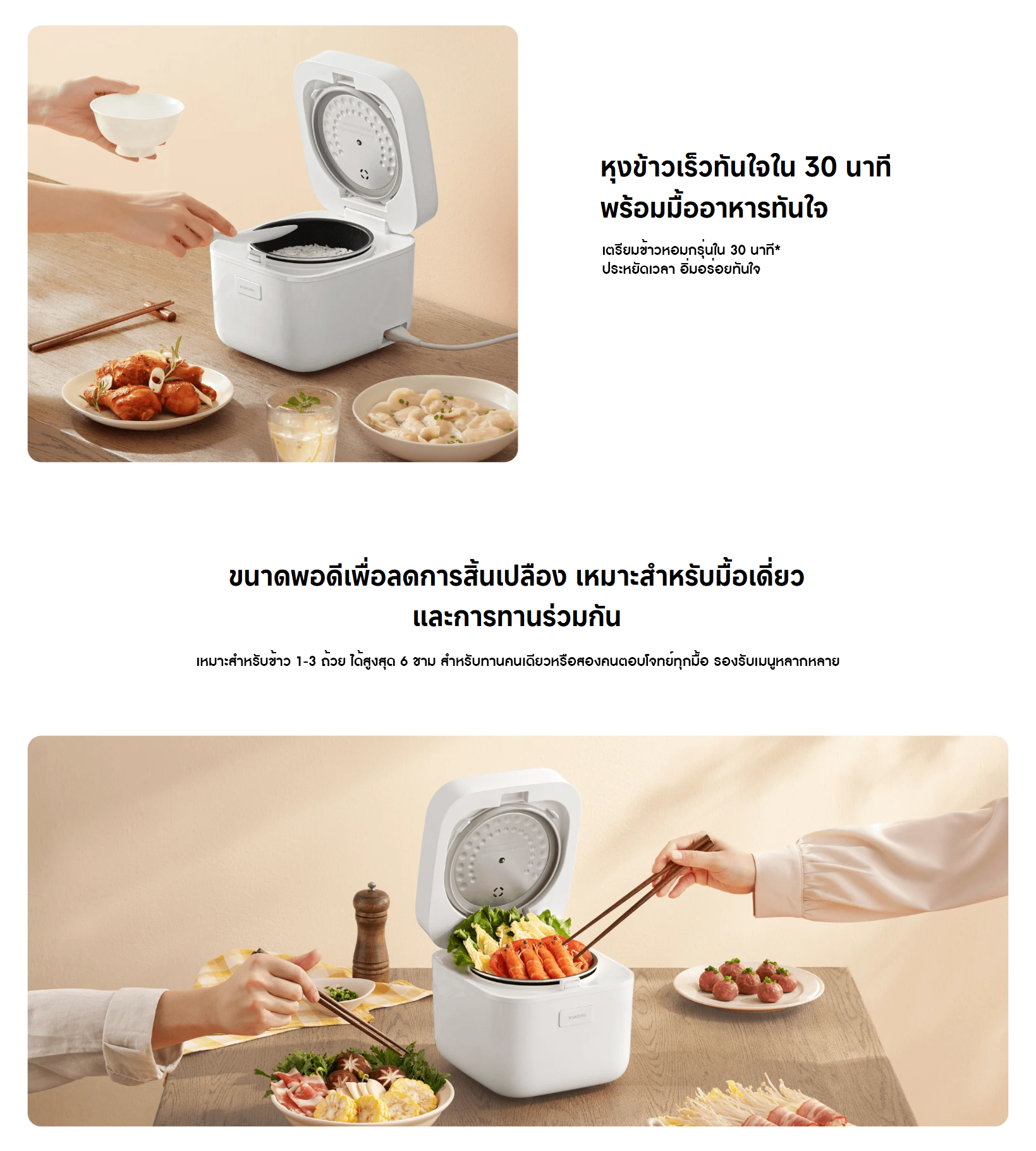 ✅ สามารถหุงข้าวเร็วภายใน 30 นาที (เวลาหุงจะปรับอัตโนมัติตามปริมาณข้าว)