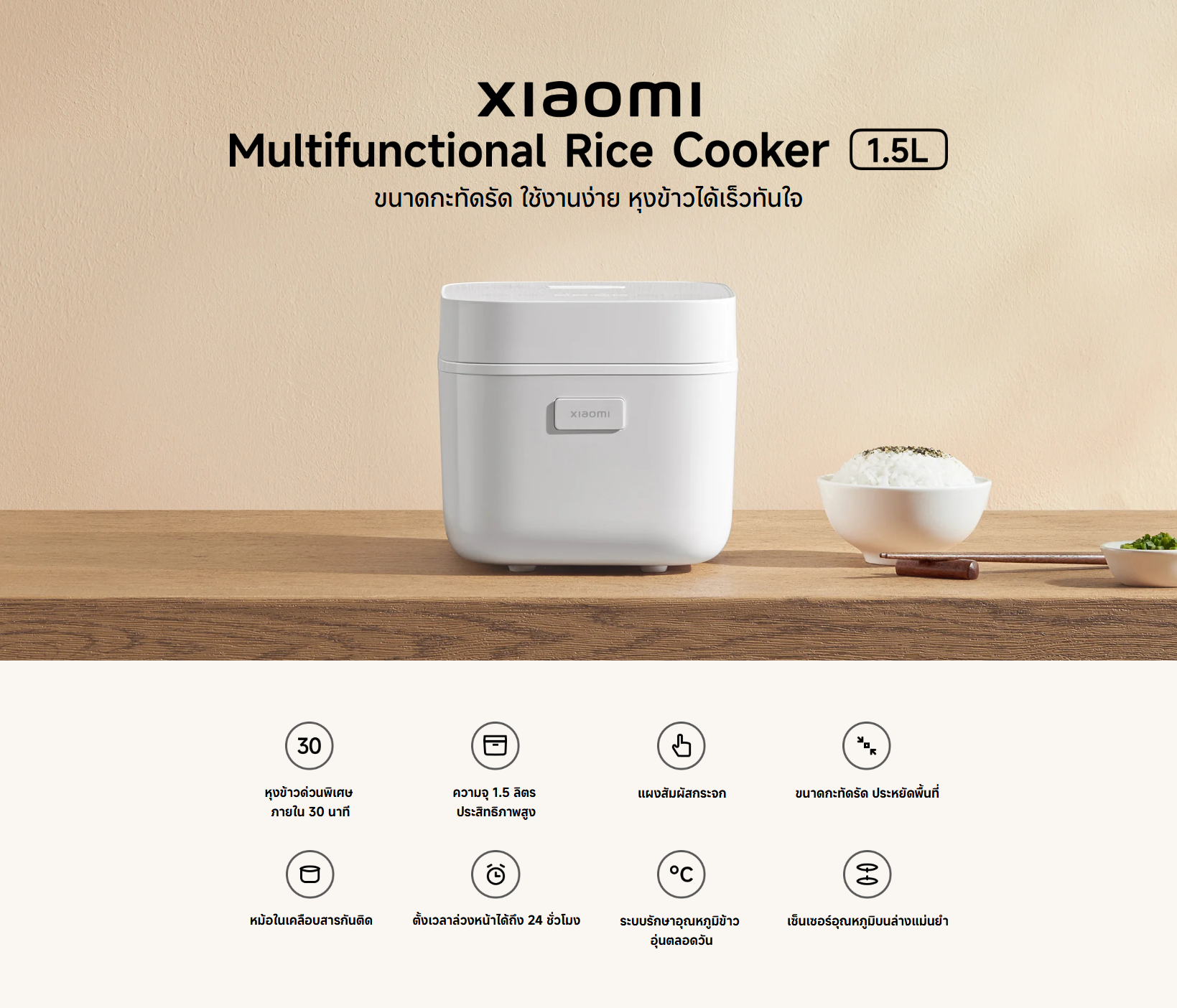 🔶Xiaomi Multifunction Rice Cooker1.5L (58614) หม้อหุงข้าว ขนาด 1.5 ลิตร ของแท้ ประกันศูนย์ 1ปี🔶