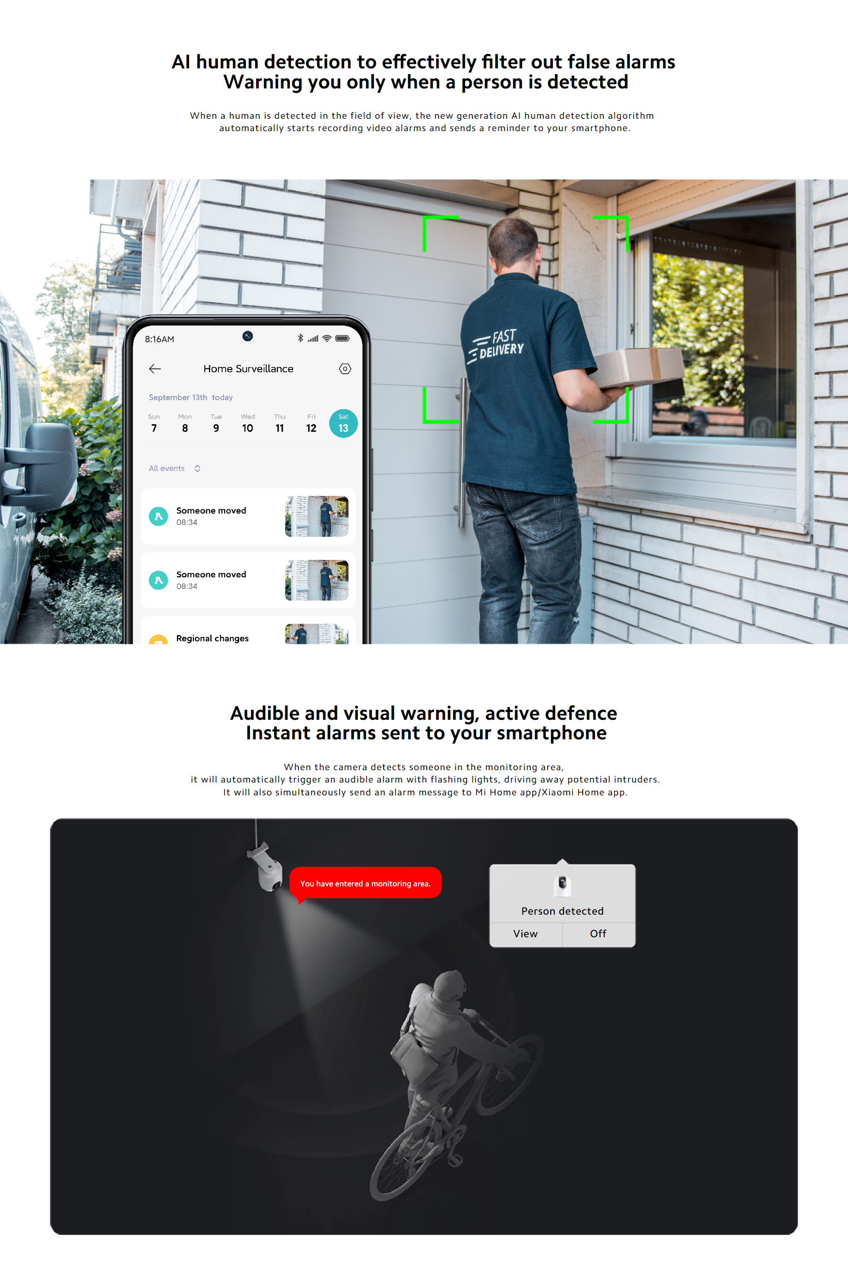 ✅ มี AI Human Detection ตรวจจับบุคคลได้ และตั้งค่าให้แจ้งเตือนผ่านแอพ Mi Home