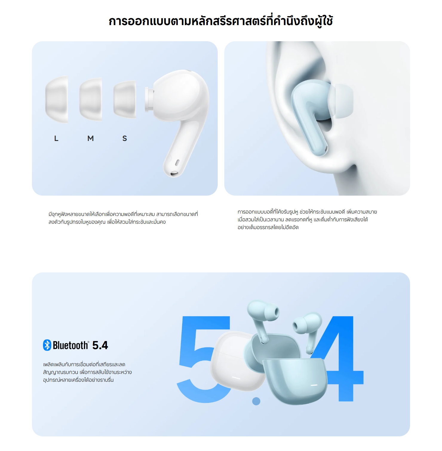 ➕ น้ำหนักหูฟังแต่ละข้าง – 4.5 ก. (±0.2 ก.)