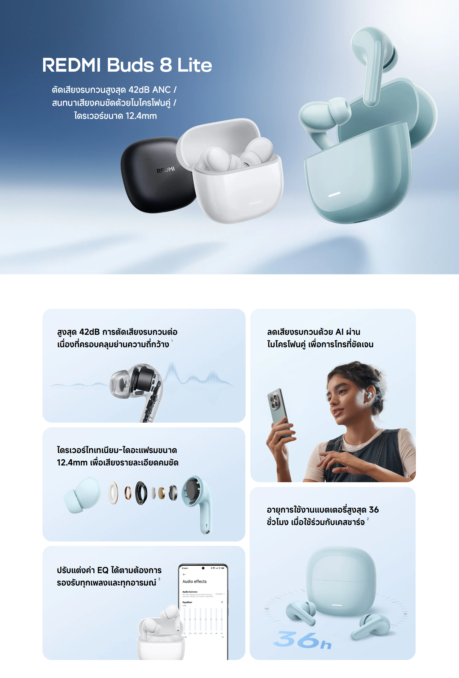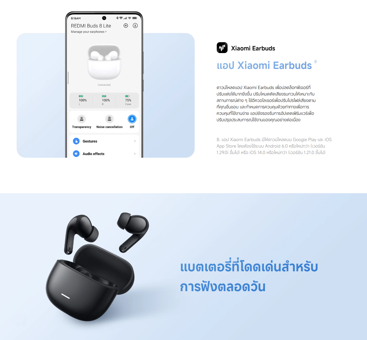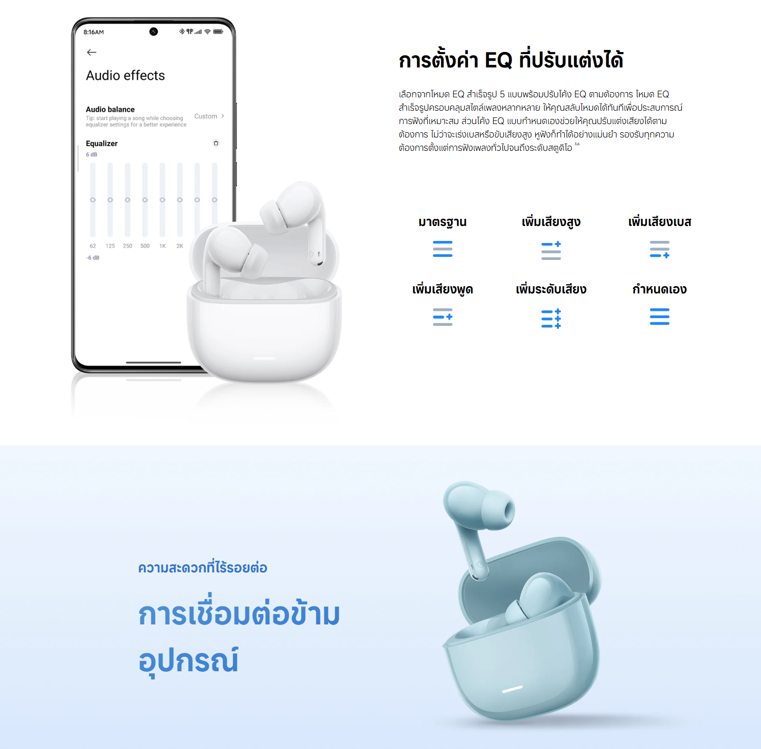 ✅ ใช้งานคู่กับแอพ Xiaomi Earbuds เพื่อการปรับเสียงได้ 4 รูปแบบ