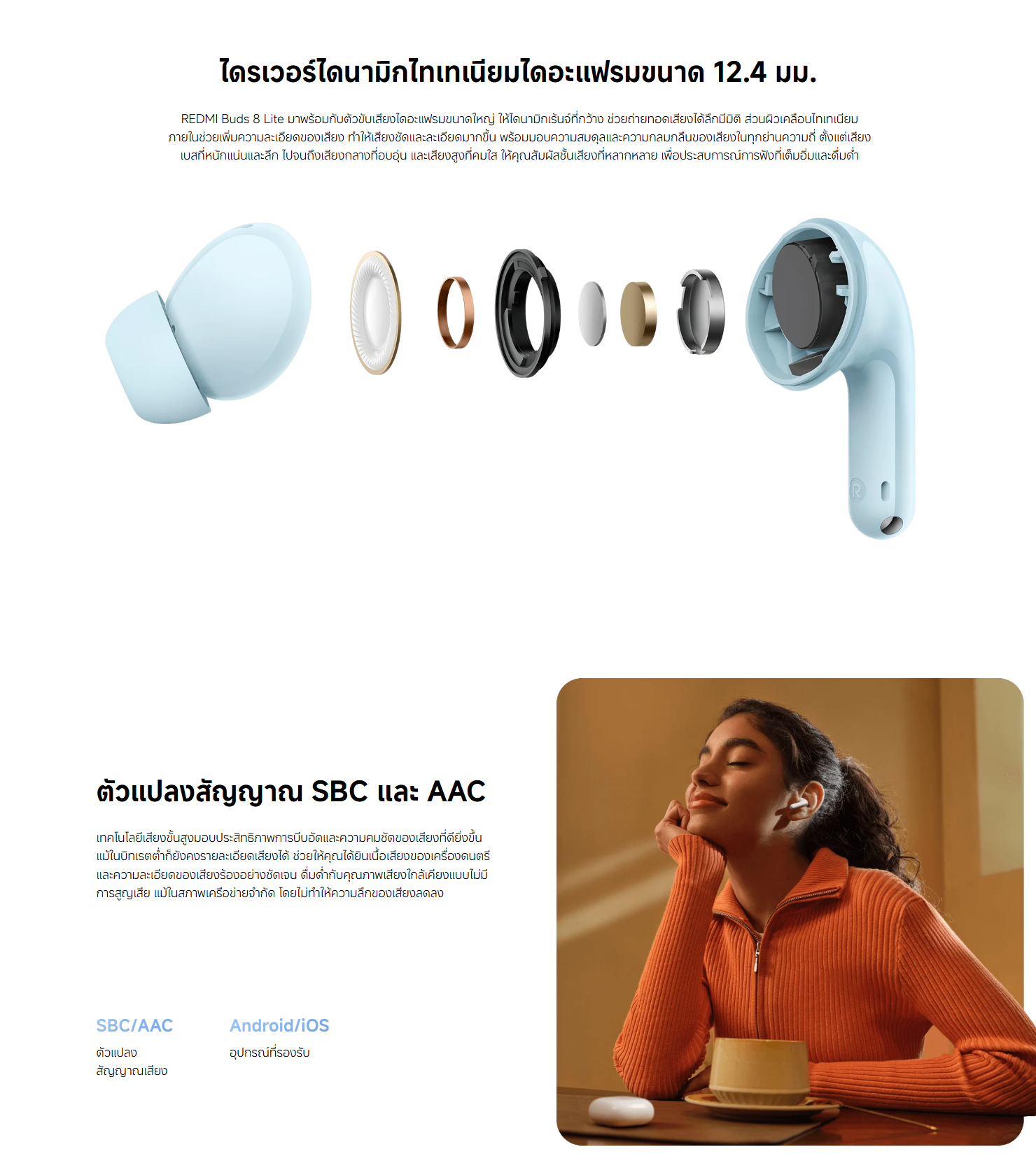 ✅ รองรับ SBC และ AAC เพื่อคุณภาพเสียงที่ดีขึ้นและลดการสูญเสียระหว่างส่งข้อมูล