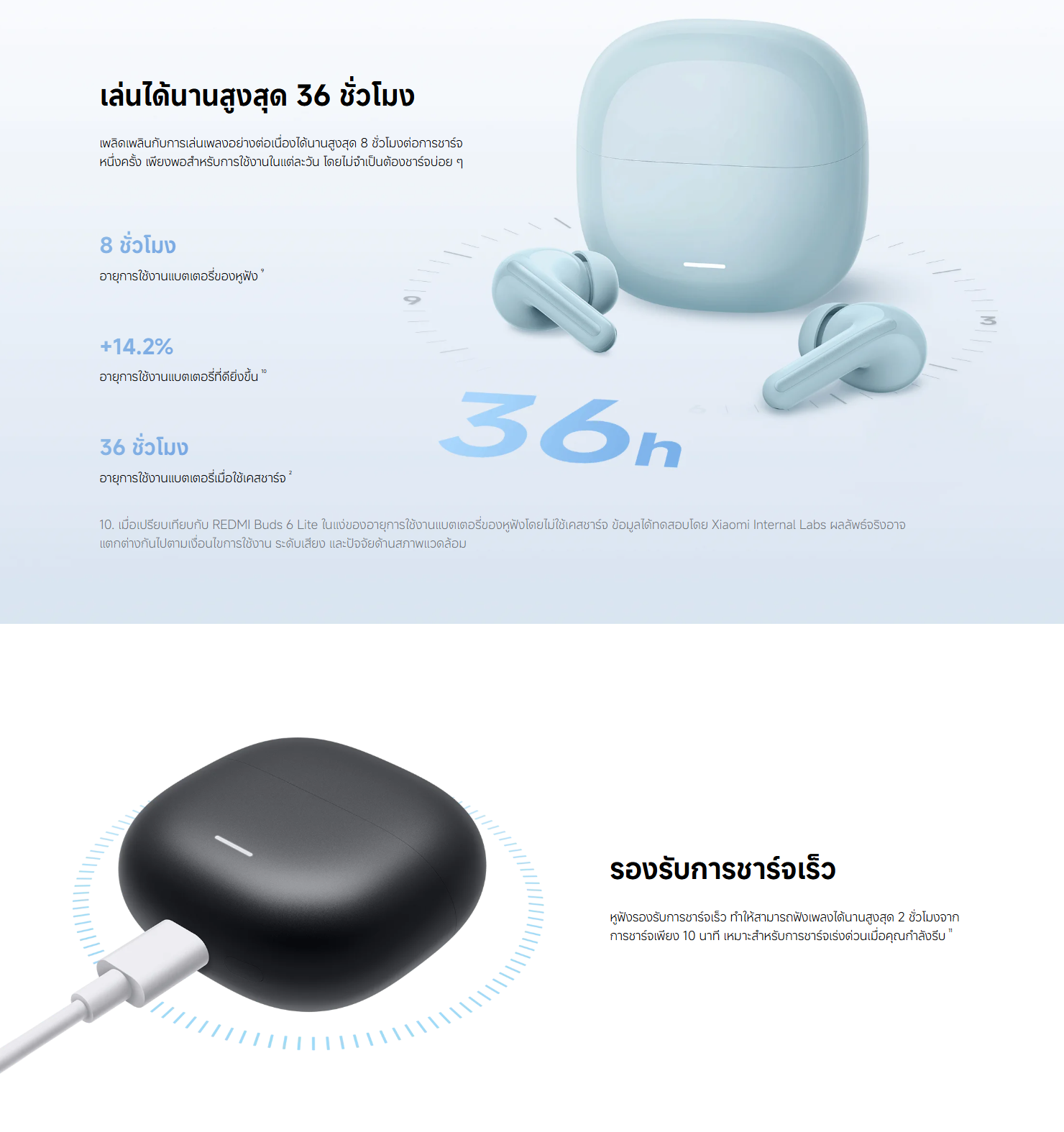 ✅ ชาร์จเร็ว 10 นาที ฟังได้นาน 2 ชม.