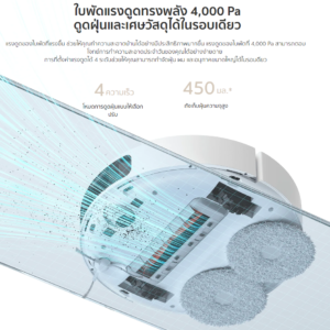 ● การดูดฝุ่นอย่างทั่วถึง ใบพัดแรงดูดทรงพลัง 4,000 Pa