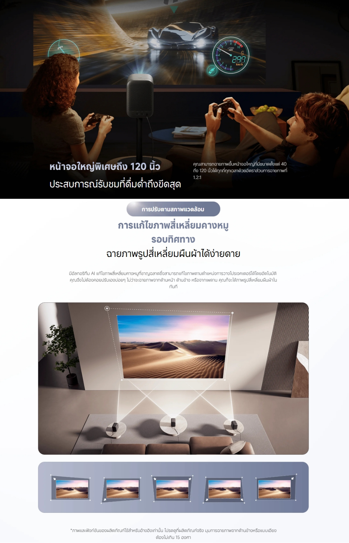 ✅ รองรับการฉายภาพ : 40″~120″(ระยะแนะนำ: 60″-100″)