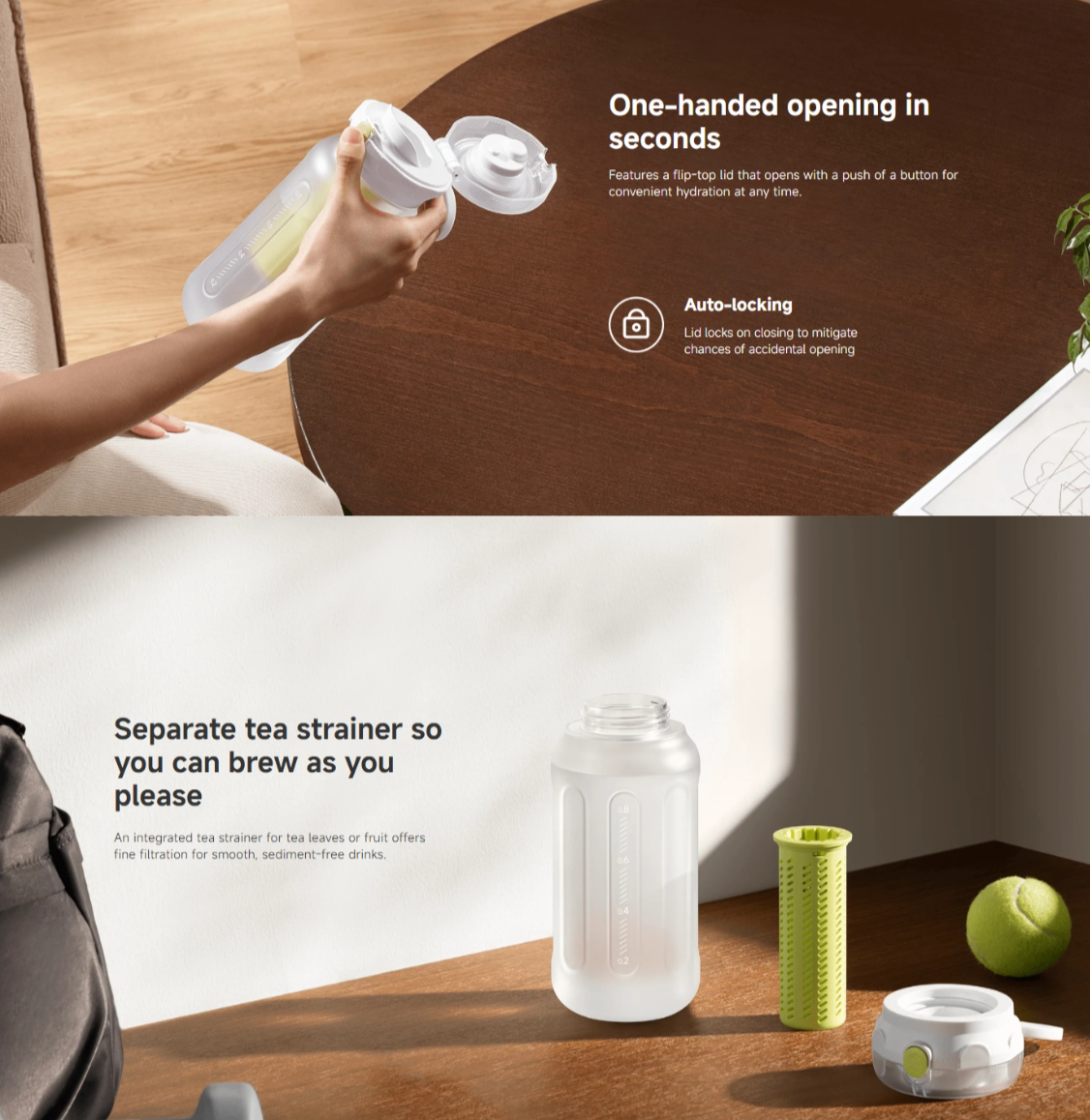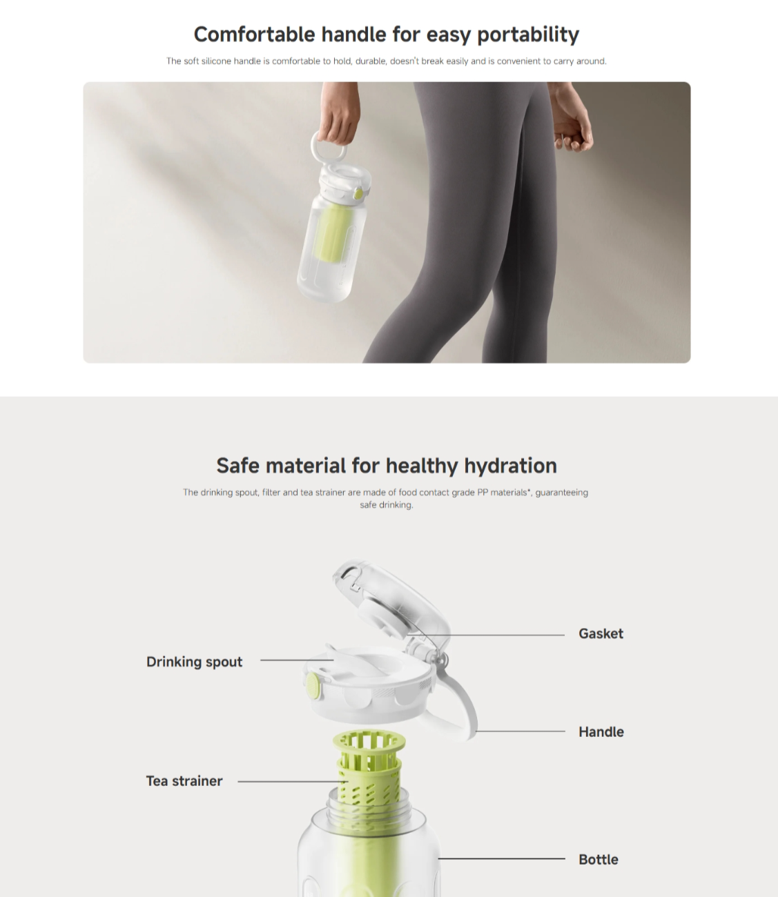 ปากดื่มน้ำ ตัวกรอง และตะแกรงกรองชาทำมาจากวัสดุ PP เกรดสัมผัสอาหาร* รับประกันความปลอดภัยในการดื่ม