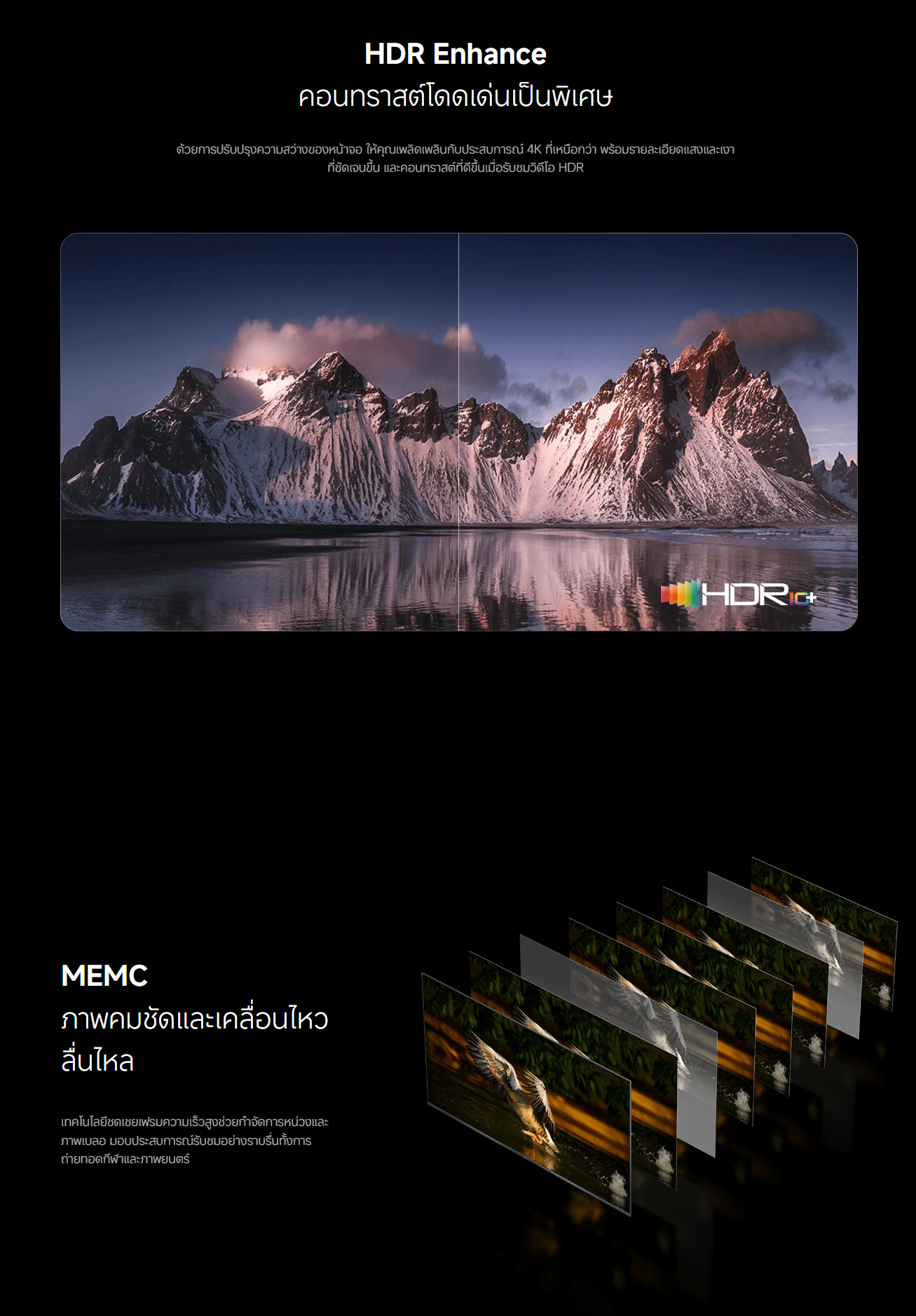 ✅ MEMC technology ช่วยให้ภาพเคลื่อนไหว smooth ไม่ว่าจะดูหนัง กีฬา หรือเล่นเกมส์