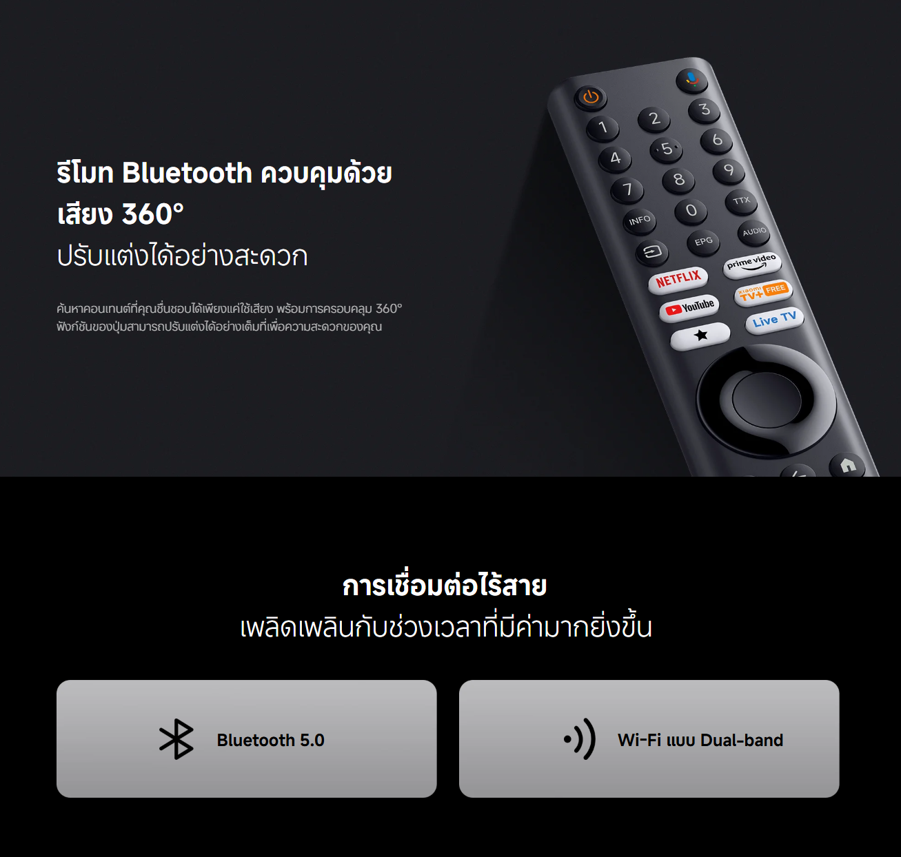 ✅ รองรับการเชื่อมต่อ : Wi-Fi 2.4GHz/5GHz / Bluetooth 5.0