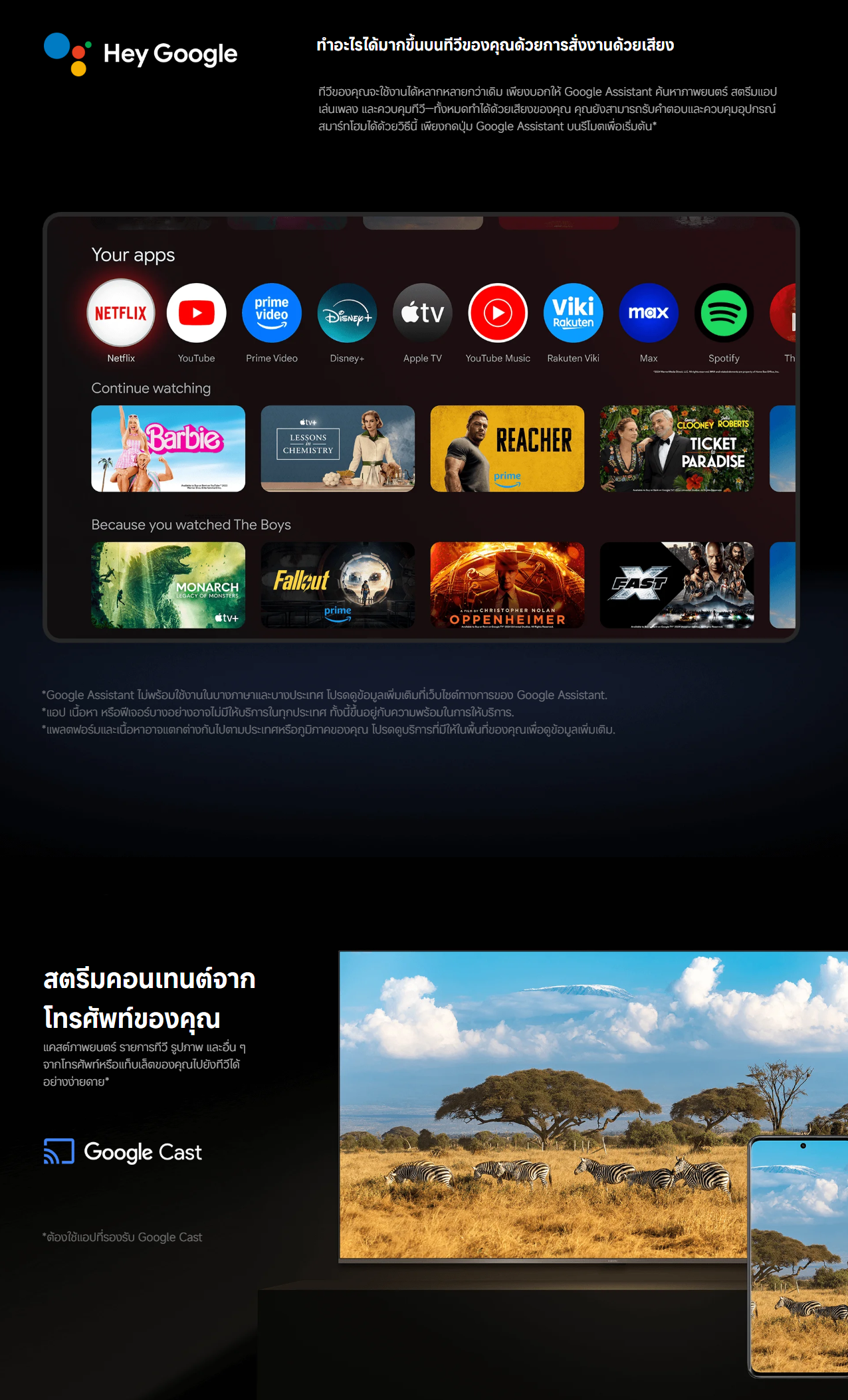 💠 รองรับ Google Cast *จำเป็นต้องมีแอปที่เปิดใช้งาน Google Cast