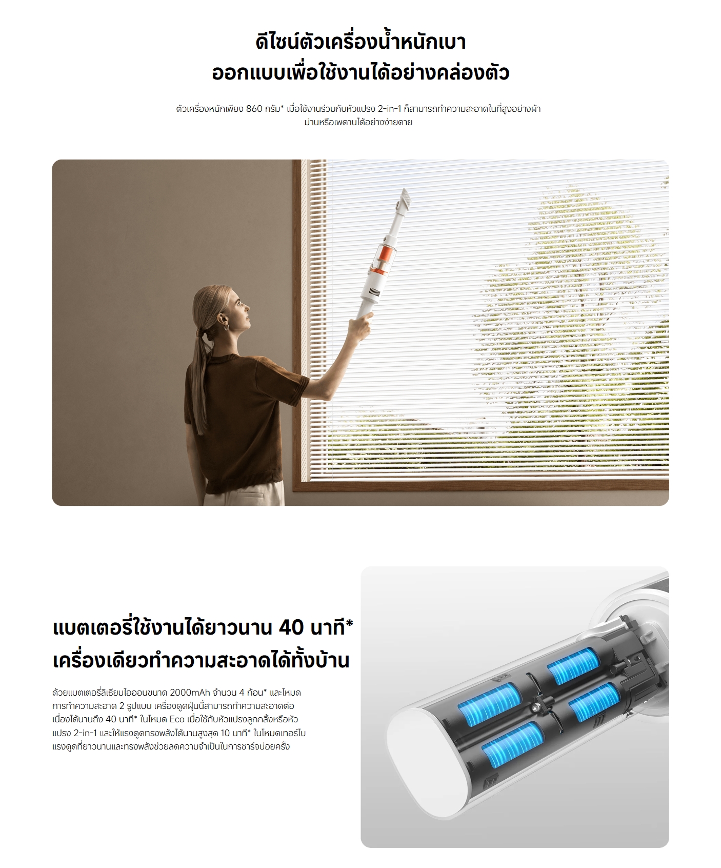 ✅ ระยะเวลาการใช้งาน Eco: สูงสุด 40 นาที / Turbo: สูงสุด 10 นาที