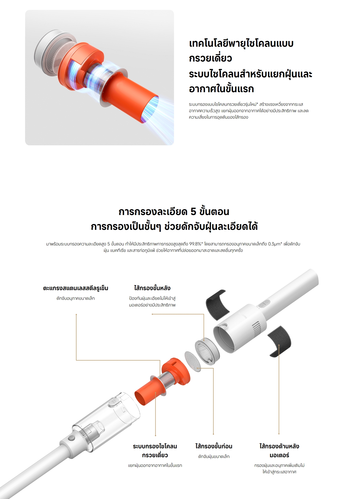 ✅ ระบบกรองละเอียด 5 ชั้น ประสิทธิภาพสูงถึง 99.8% กรองฝุ่นขนาดเล็กสุด 0.3µm พร้อมดักจับฝุ่น แบคทีเรีย และสารก่อภูมิแพ้