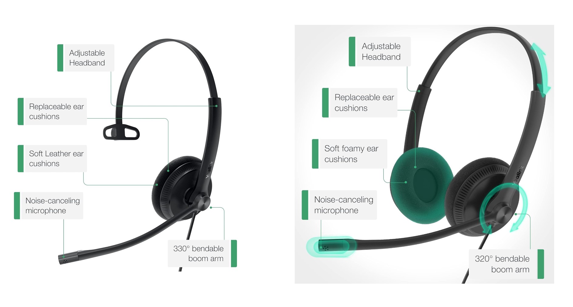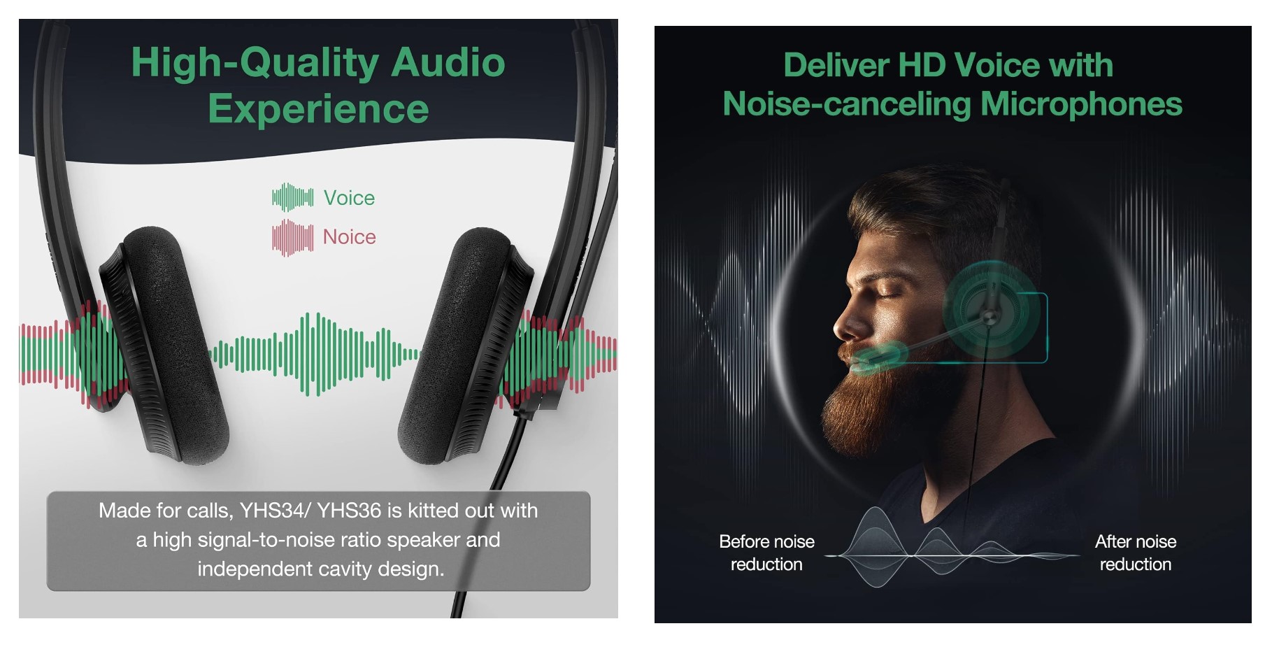 YHS34 Lite is 10%~30% lighter than other headsets in the same range. Its ergonomic design makes this headset comfortable enough for long conference calls and