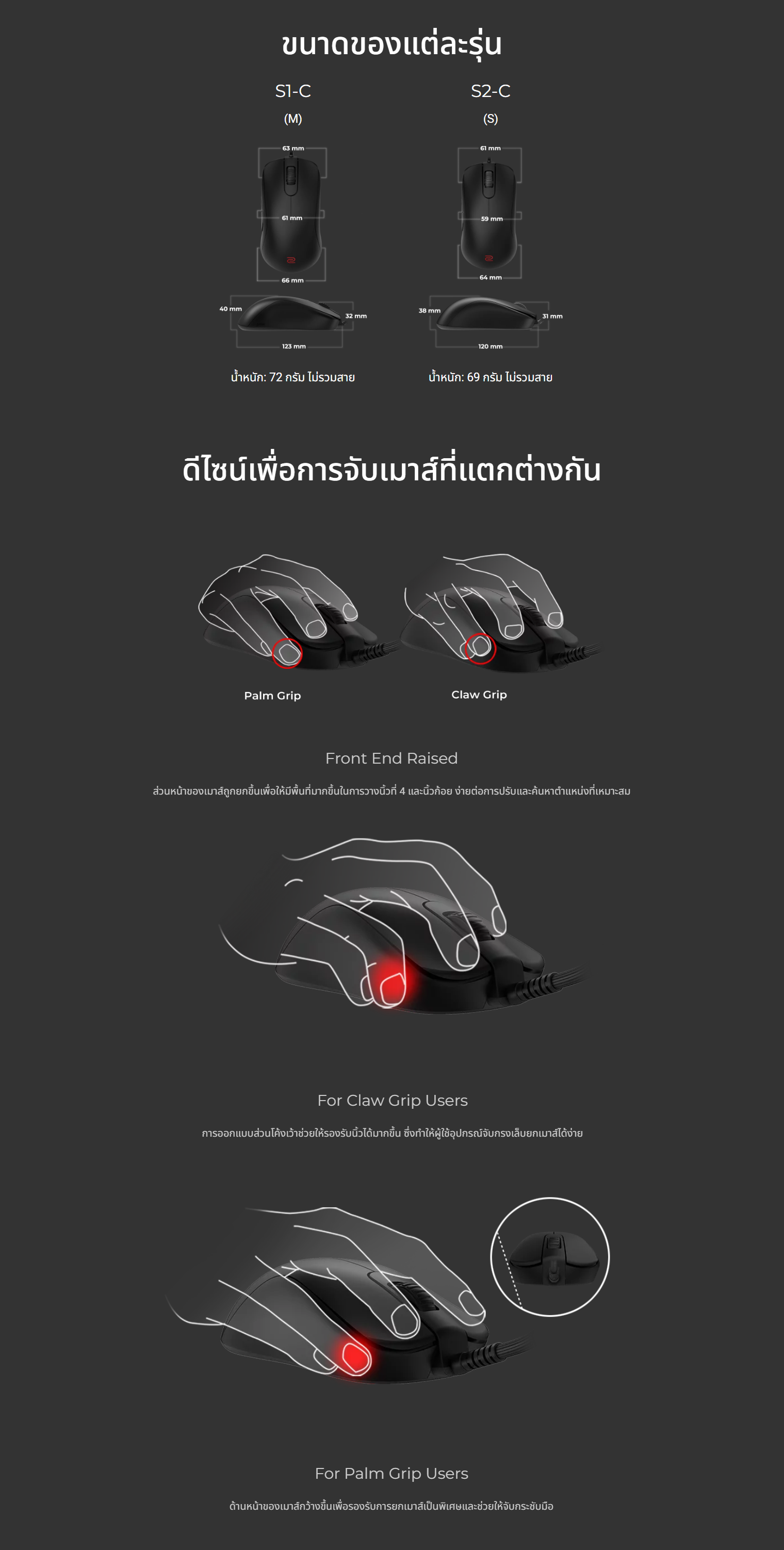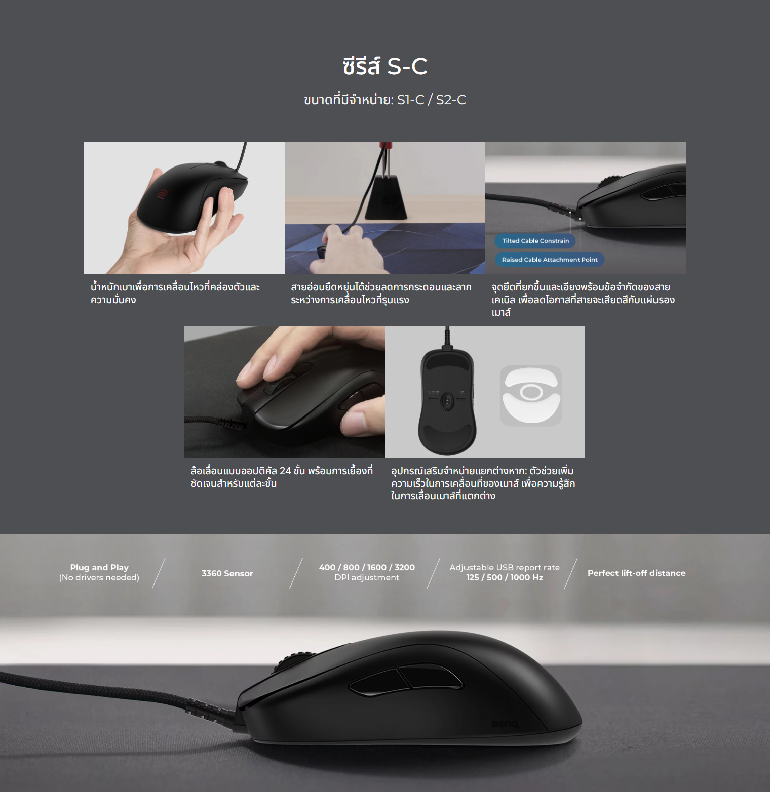 🔶Zowie S2-C BLACK Gaming Mouse เมาส์เกมมิ่ง มีสาย สีดำ ของแท้ ประกันศูนย์ 1ปี🔶