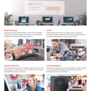 - QoS Ports ที่ออกแบบมาให้บริหารการใช้งานเครือข่ายให้ราบรื่น