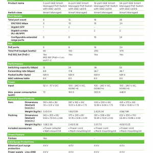- PoE Standard 802.3af/at ทั้งหมด 8 พอร์ต ให้กำลังไฟสูรวมสูงสุด 130 watt