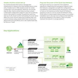 - จัดการเครือข่ายผ่านเว็บที่ใช้งานง่ายได้หลายฟังก์ชั่น เช่น การรวมลิงค์ (LAG), การป้องกัน IPv6 และ DoS