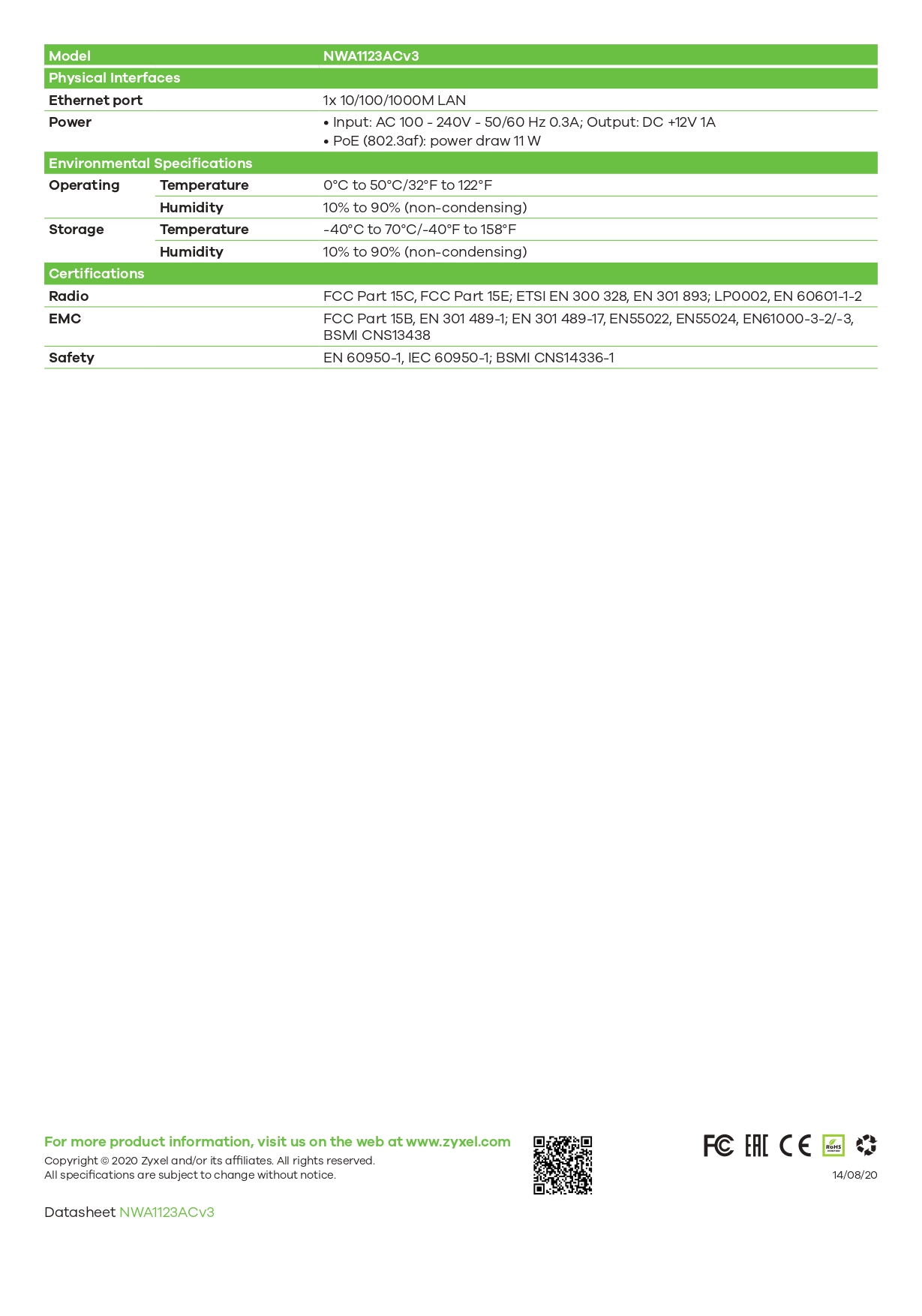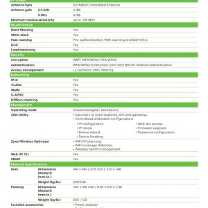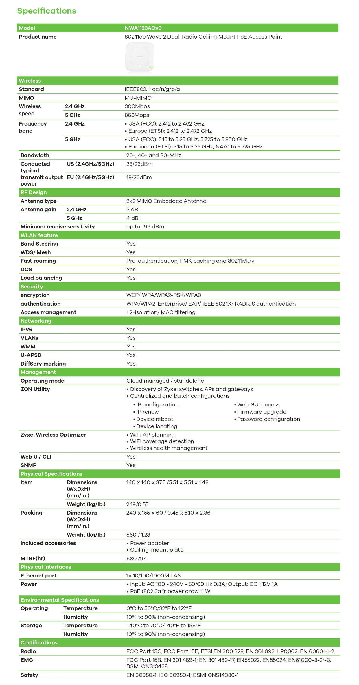 ZYXEL NWA1123ACv3 มาพร้อมพอร์ทสาย LAN 1 พอร์ท ความเร็ว 10/100/1000 Mbps รวมถึงยังรองรับ PoE อีกด้วย